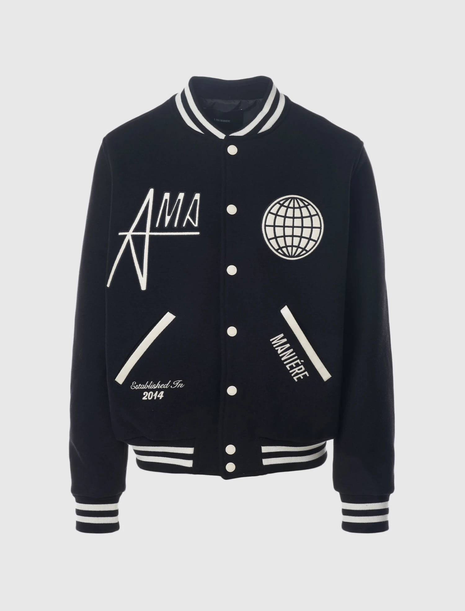 Experience the elevated style of the A Ma Maniére Regular-fit wool blend varsity jacket. Featuring a ribbed knit collar, cuffs, and hem, this piece exudes elegance. Two slit pockets with textured trim add both functionality and texture to the jacket. Adorned with logo prints and embroidered text, this jacket showcases the brand’s meticulous attention to detail. Don’t miss out on this must-have jacket – get yours today!