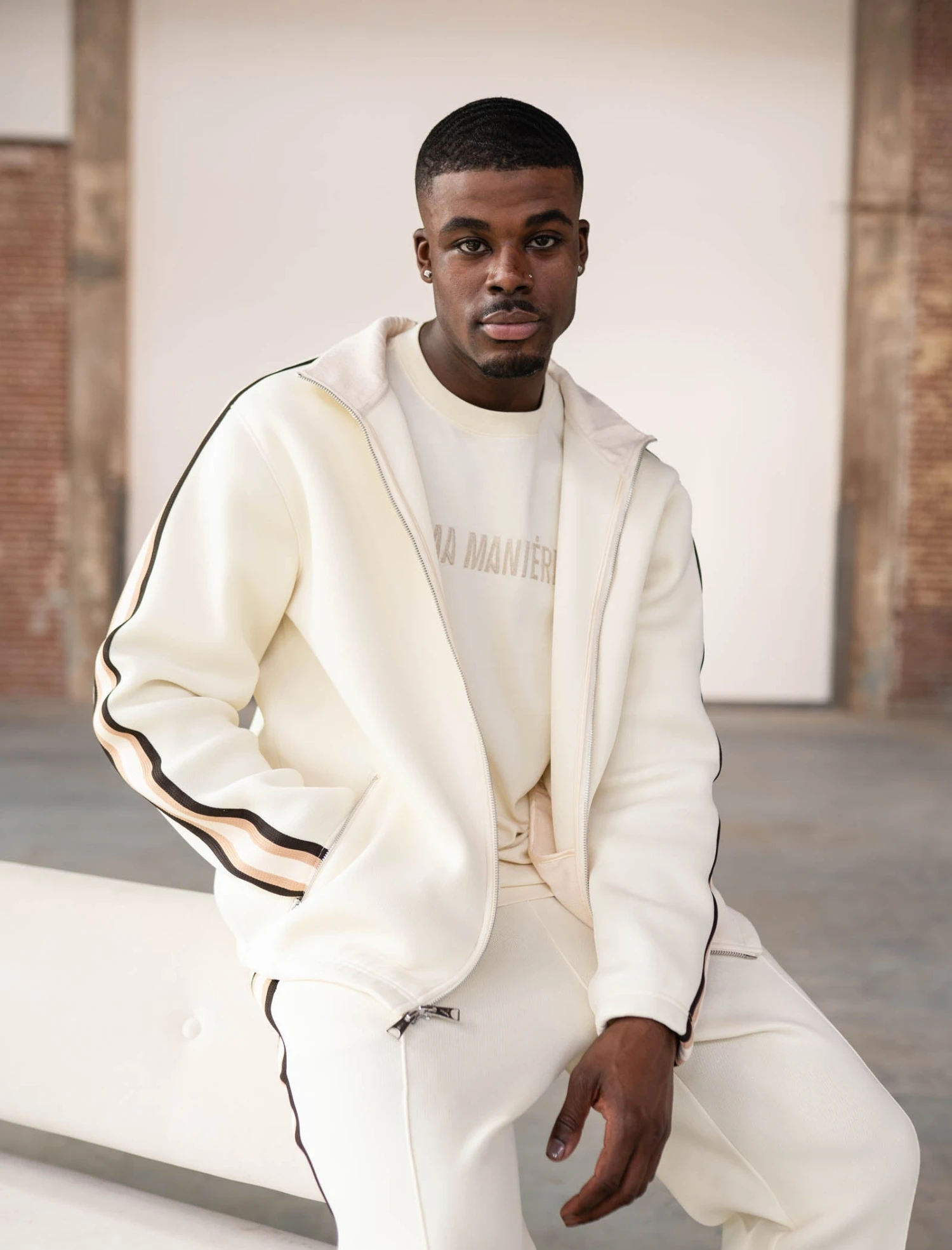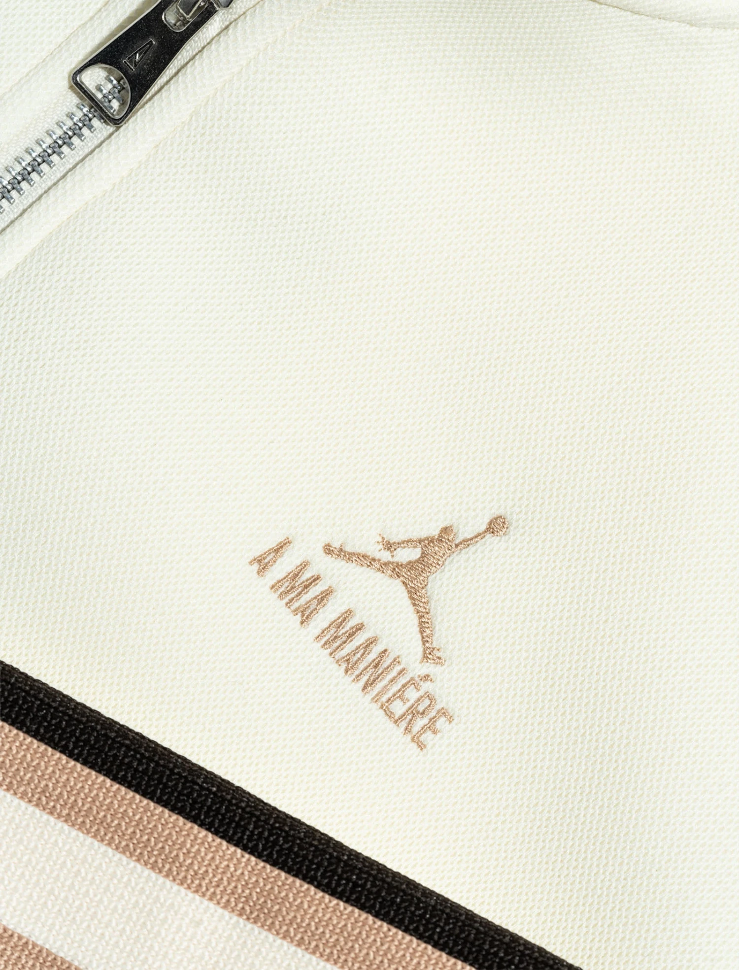 Unleash your passion for style with the AMM x Jordan Brand Sueded Knit Track Jacket. Featuring a branded double zip front closure and high neck collar, this jacket exudes confidence and luxury. The striped knit taping down the sleeves adds a touch of sporty sophistication. With zippered side pockets and an elasticated waistband and cuffs, this jacket is both functional and stylish. And let’s not forget the iconic embroidered logo adorning the left chest. Elevate your wardrobe with this must-have piece.