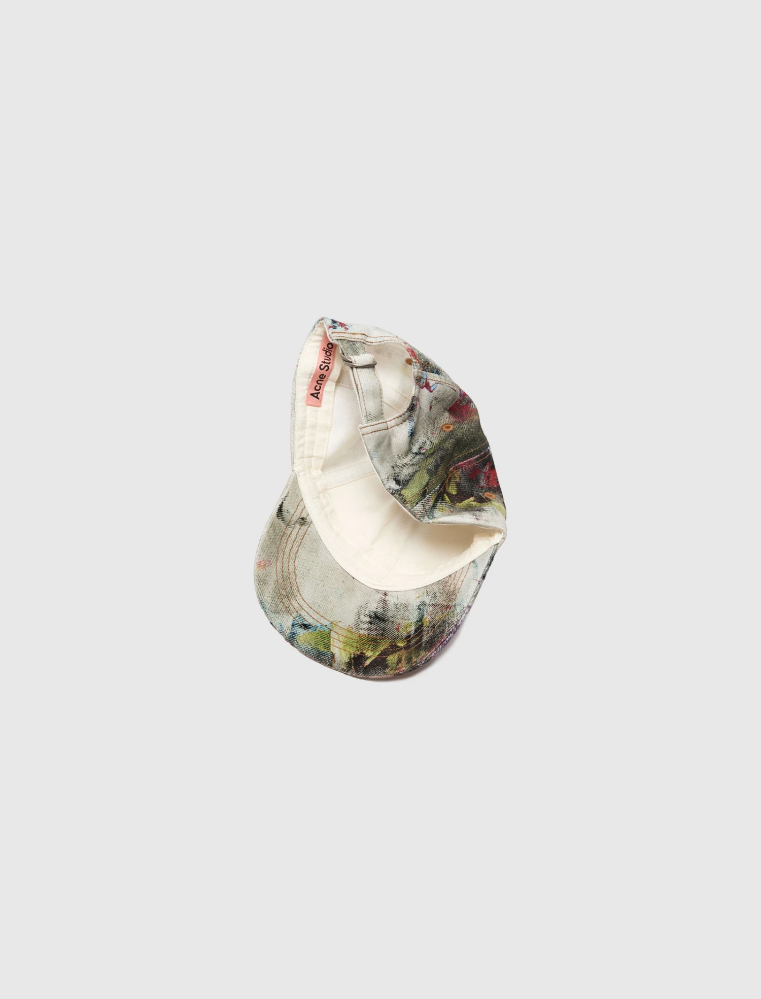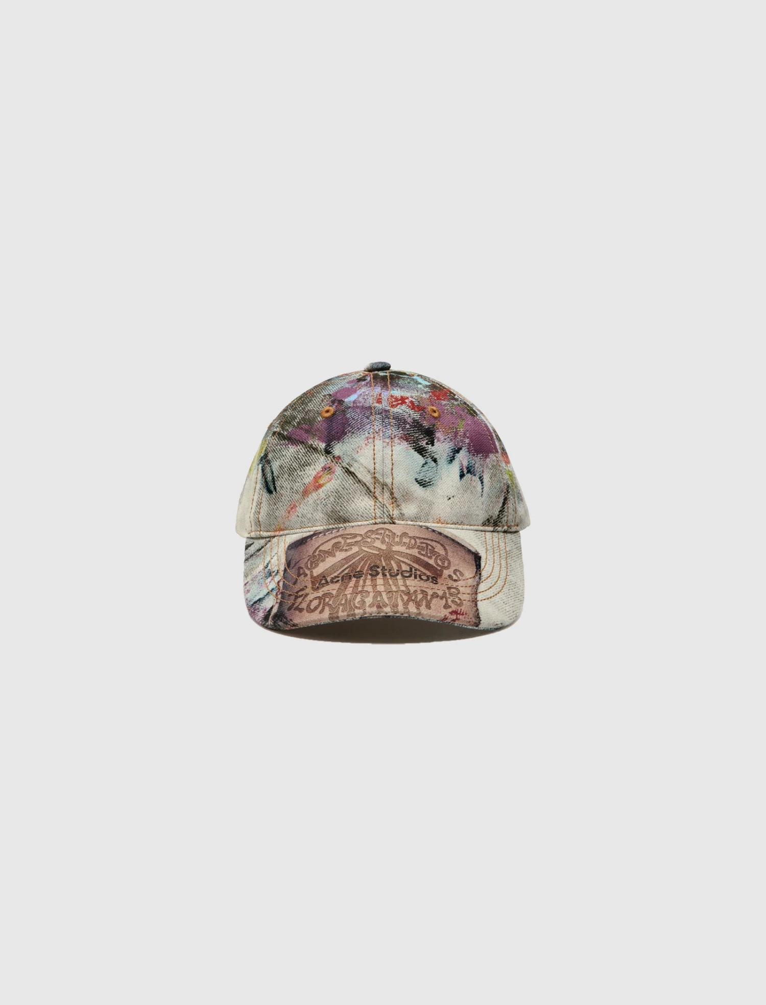 Denim cap. 3D all over print. Curved brim. Adjustable back strap. Matte silver-tone hardware.