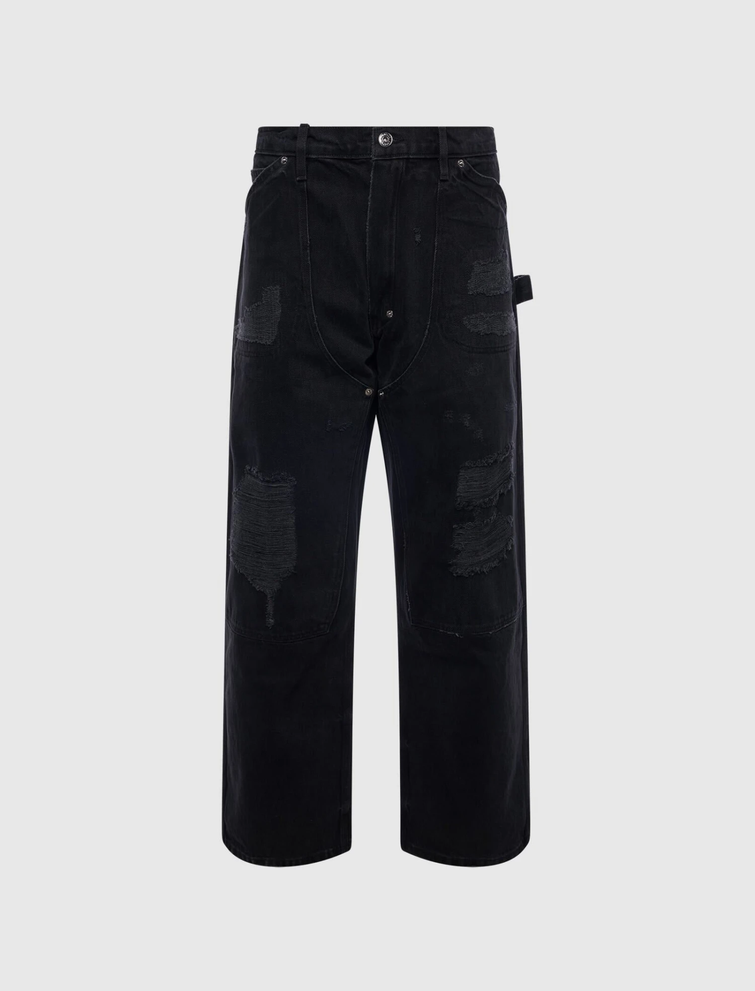 These jeans from Gallery Dept. are not just articles of clothing, they are wearable masterpieces. The ‘Branko’ pair embodies the brand’s ethos with their handcrafted, rugged look. Made from distressed denim, these carpenter-inspired jeans feature strategic rips and frayed edges for a unique, DIY feel.
