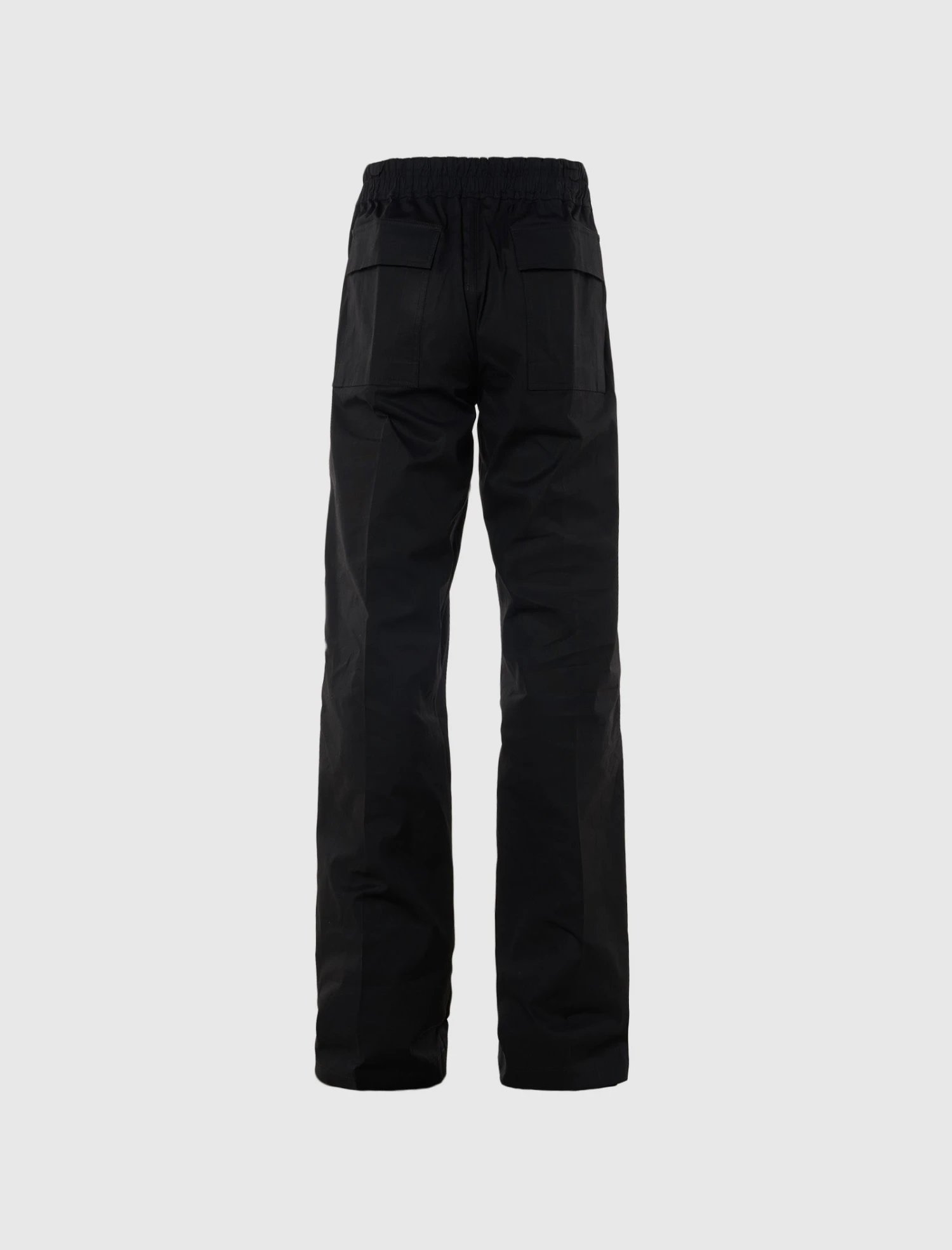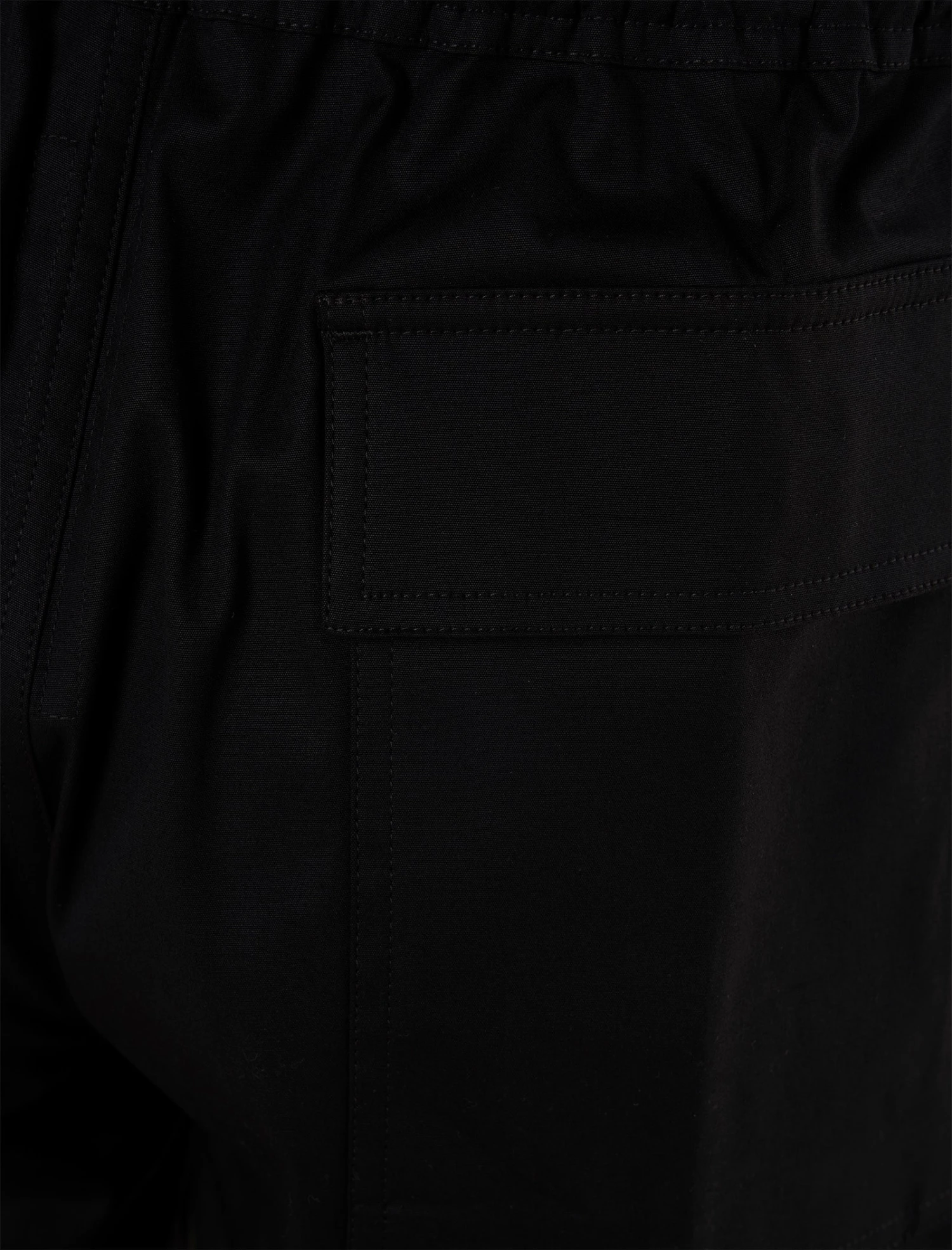 Relaxed-fit pants. Elasticized drawstring waistband. Two slit pockets at sides. Two cargo pockets at back.