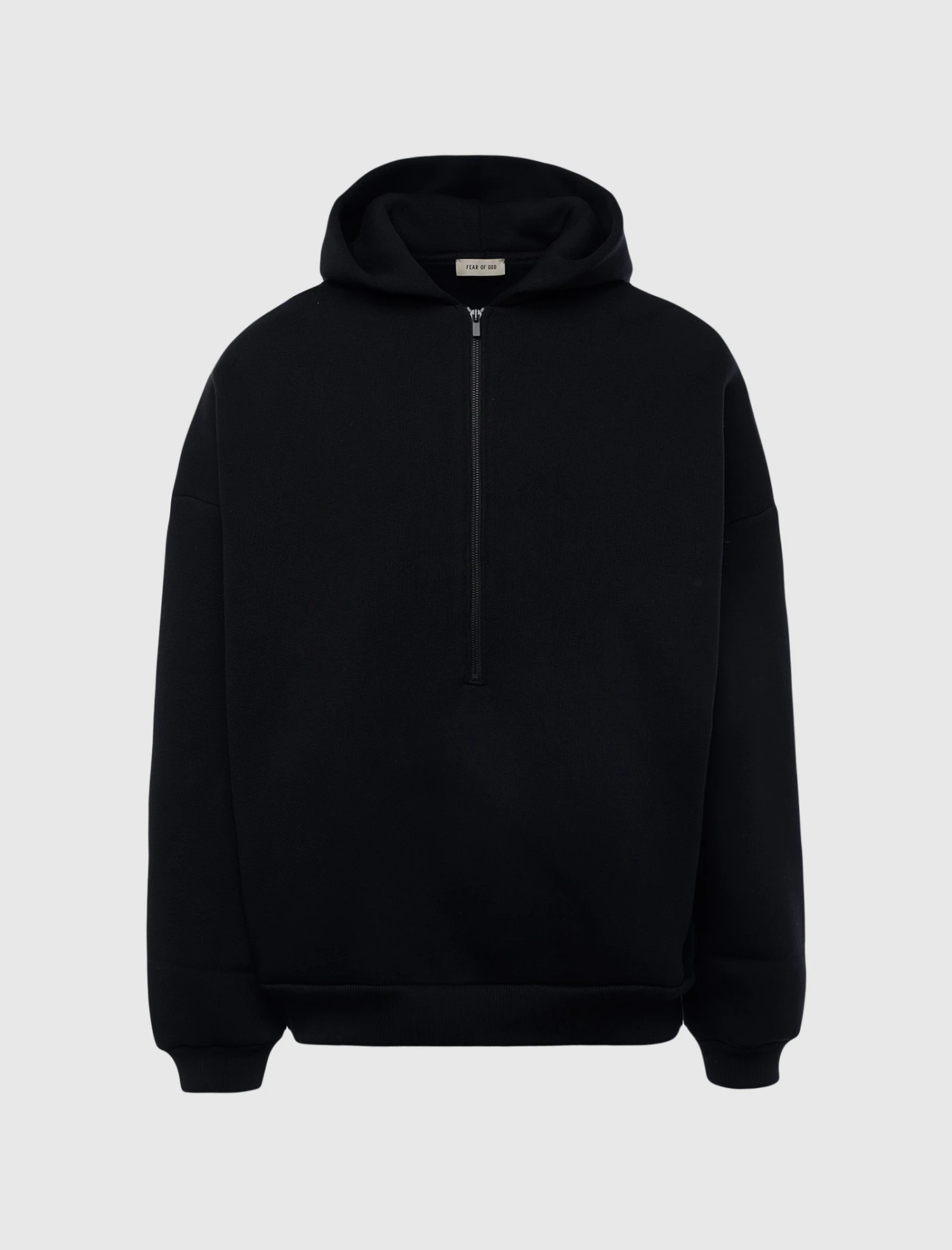 Skillfully made in Portugal using a thick cotton blend for exceptional depth and comfort, this Fear of God Half Zip Hoodie features a two-layered hood and a signature relaxed fit with a dropped shoulder silhouette. The reverse boasts a leather FOG label, completing the look with a touch of luxury.