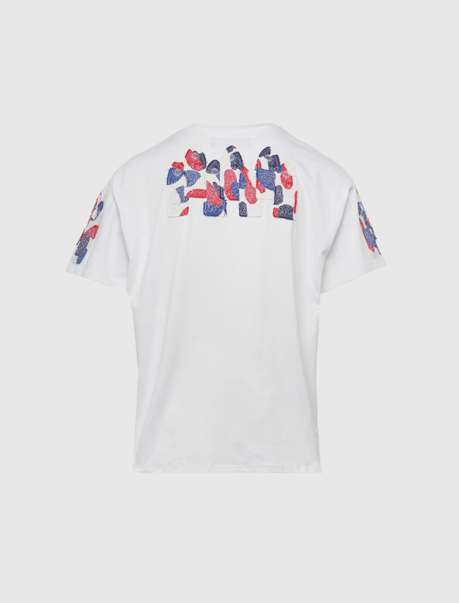 Inspire your wardrobe with the captivating Who Decides War classic-fit short sleeve cotton t-shirt. Featuring a comfortable crewneck and a striking window appliquƩ with an abstract print throughout, this piece is a must-have for any fashion-forward individual.