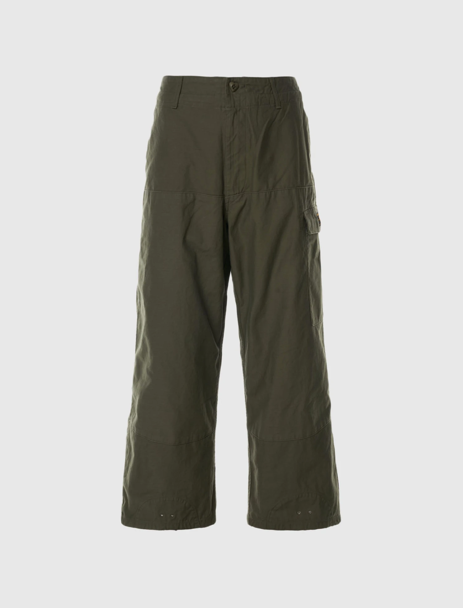 Regular-fit cargo pants. Adjustable drawstring waistband and cuffs. Two slit pockets at sides. Single patch pocket at back. Single cargo pocket at side featuring logo patch.