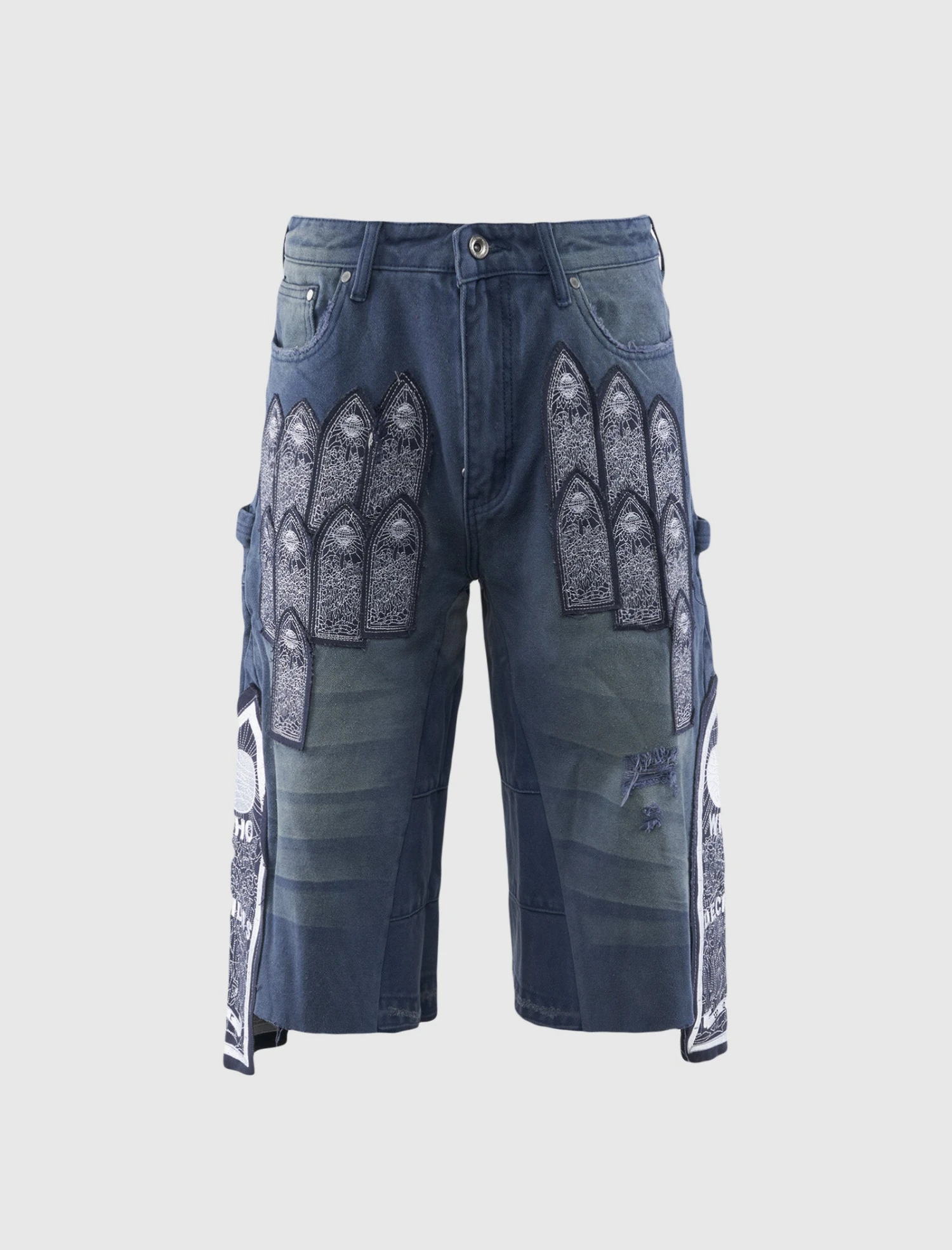 Enhance your look with Who Decides War classic-fit shorts. Five-pockets, hammer loop tool pockets, and embroidered patches make these shorts a versatile and stylish choice. Button and zip closure provide easy access while the raw cut adds a unique touch.