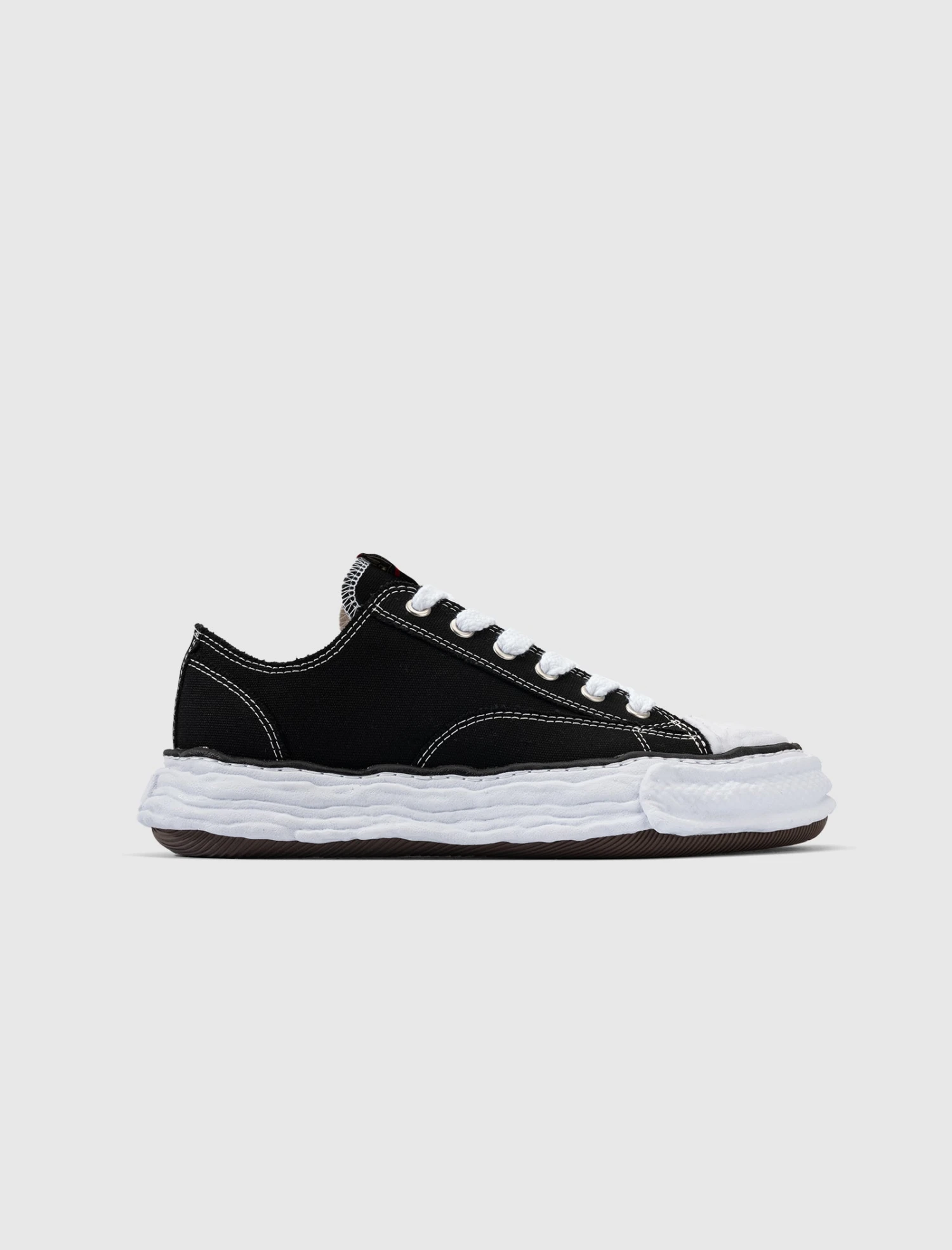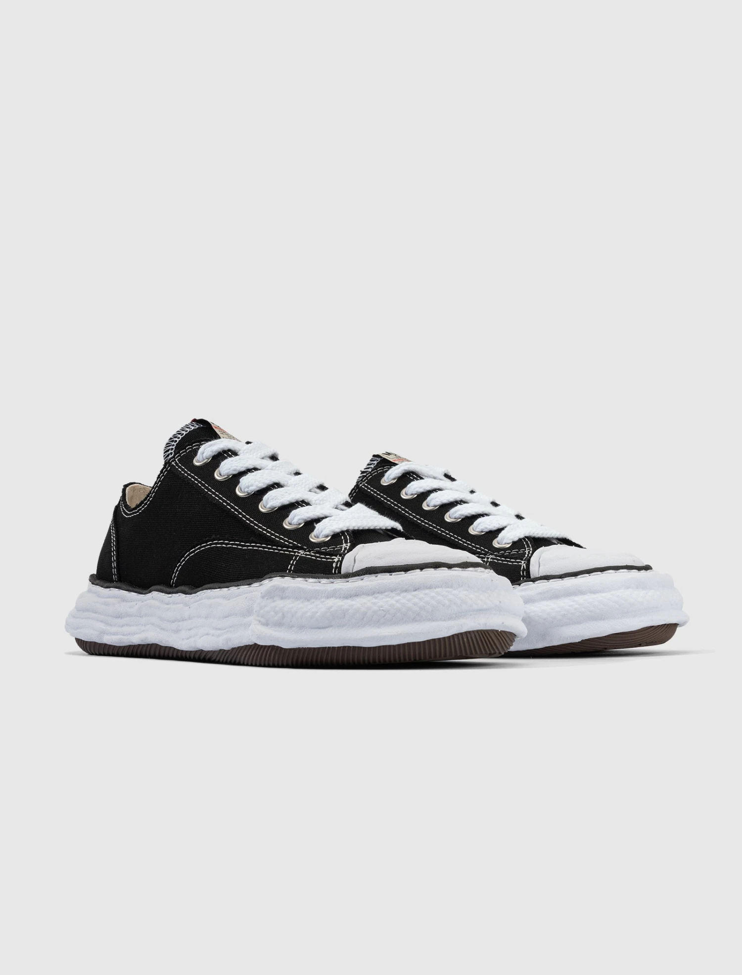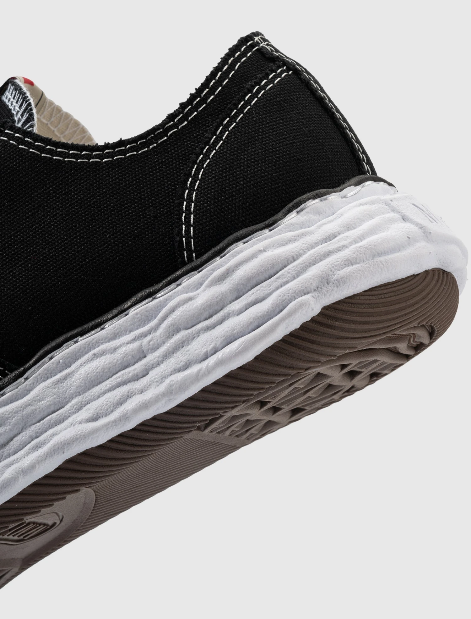 Low top sneakers. Rubber toe cap. Canvas upper. Aluminum eyelets. Front lacing. Textured molded rubber midsole. Molded Flat treaded-rubber outsole.