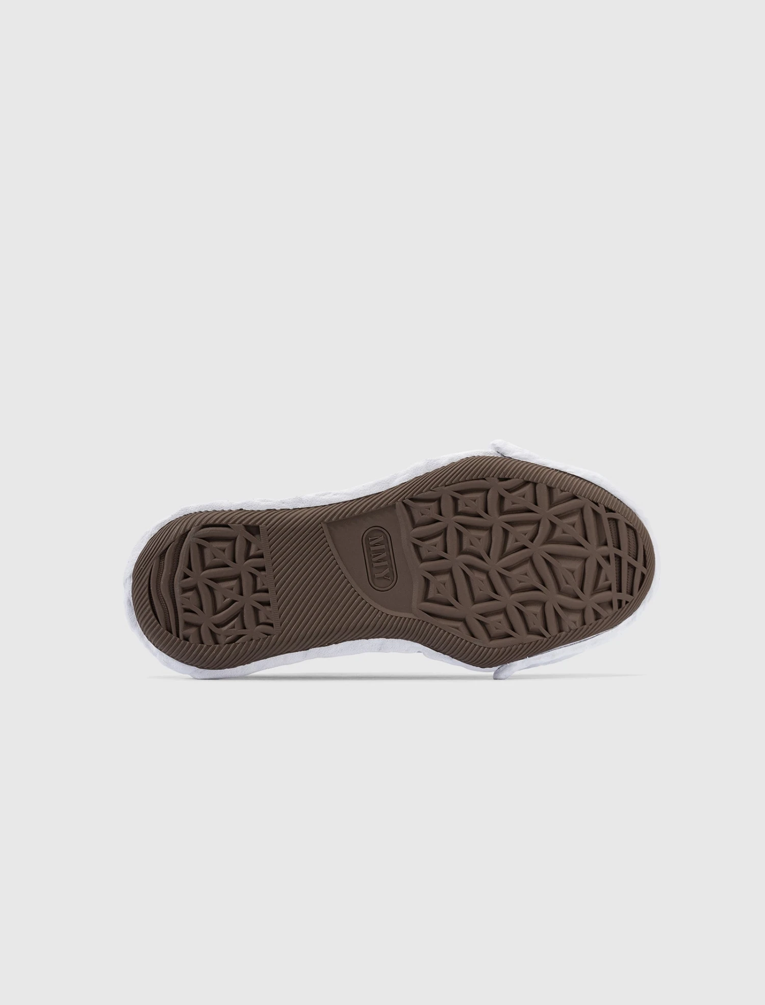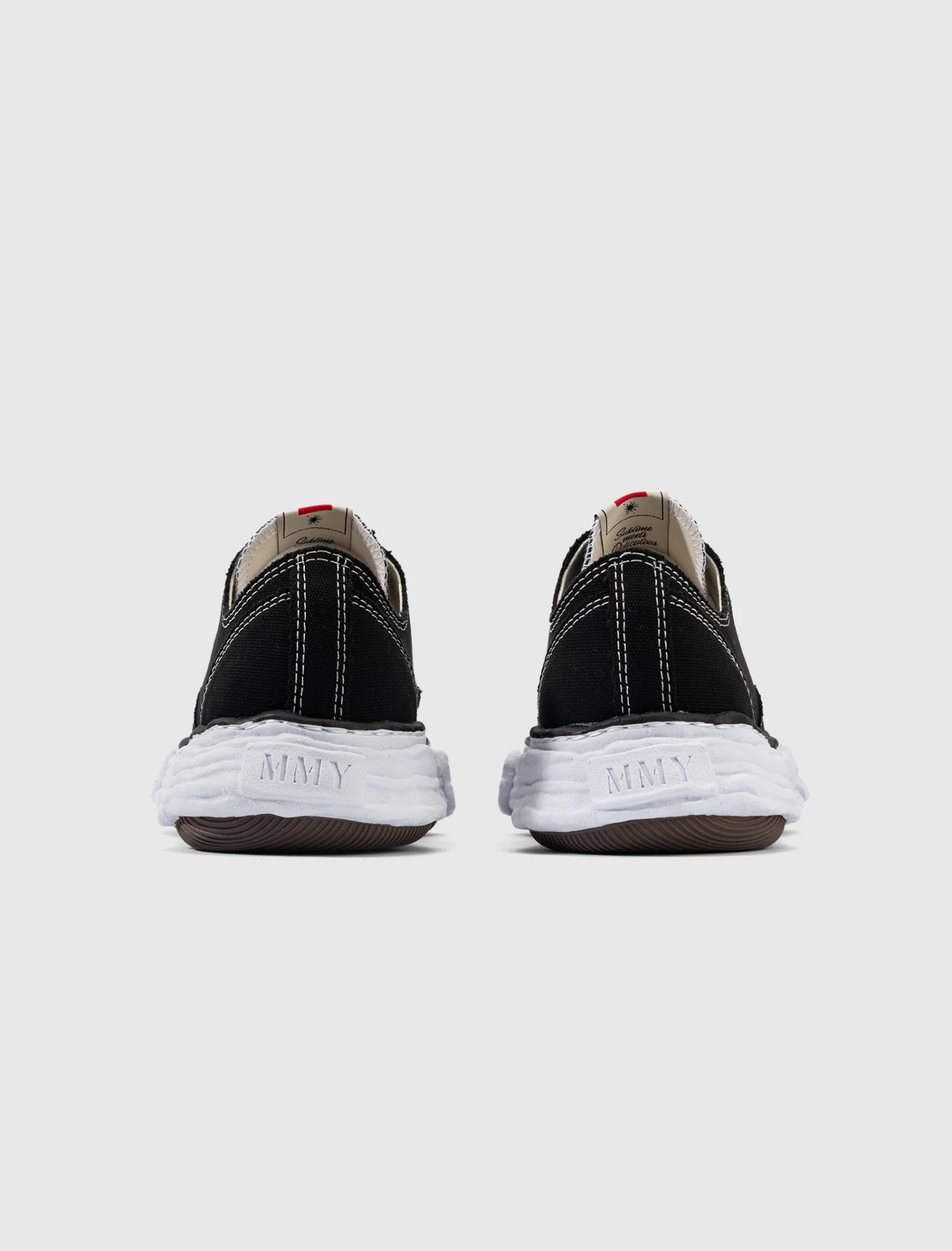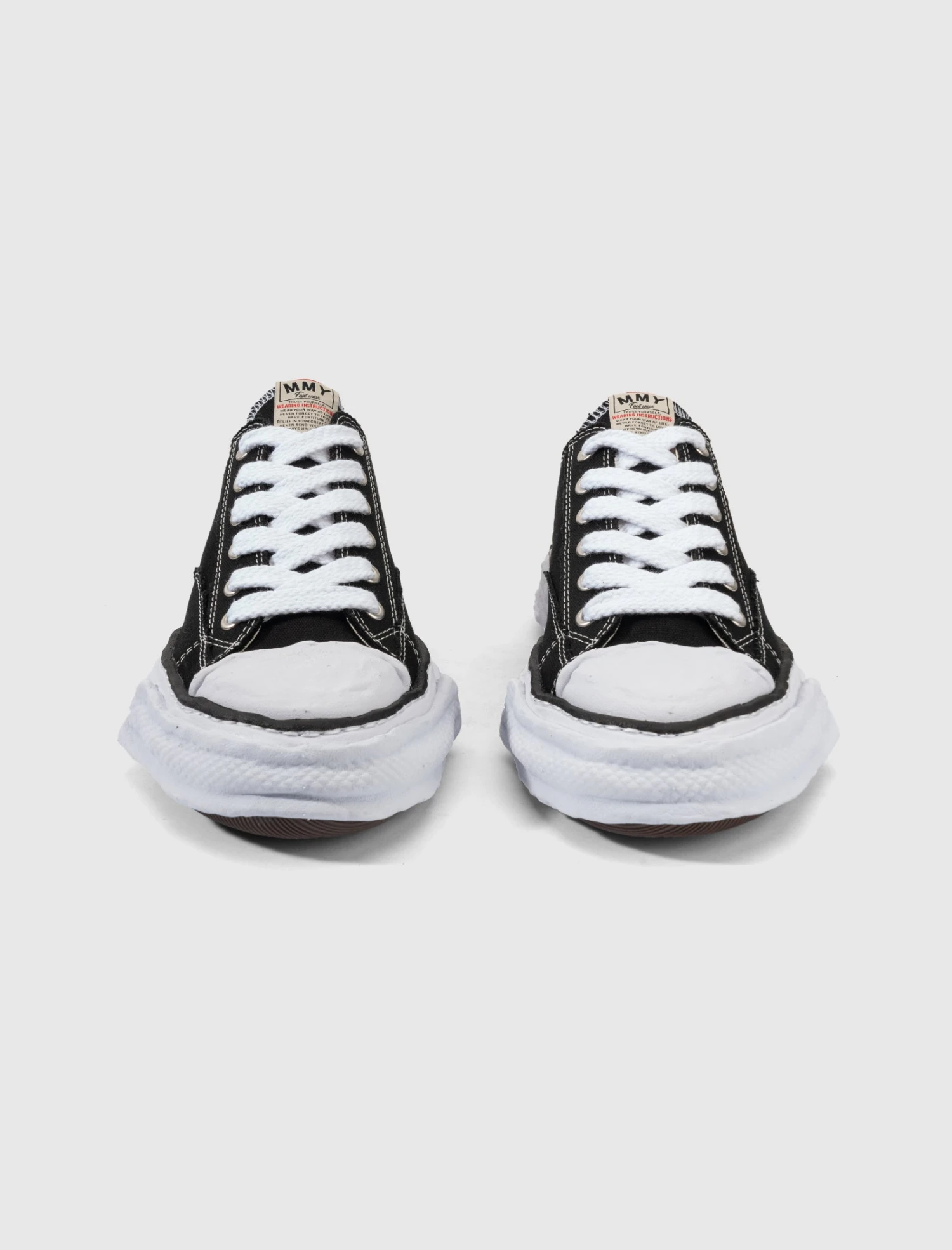 Low top sneakers. Rubber toe cap. Canvas upper. Aluminum eyelets. Front lacing. Textured molded rubber midsole. Molded Flat treaded-rubber outsole.