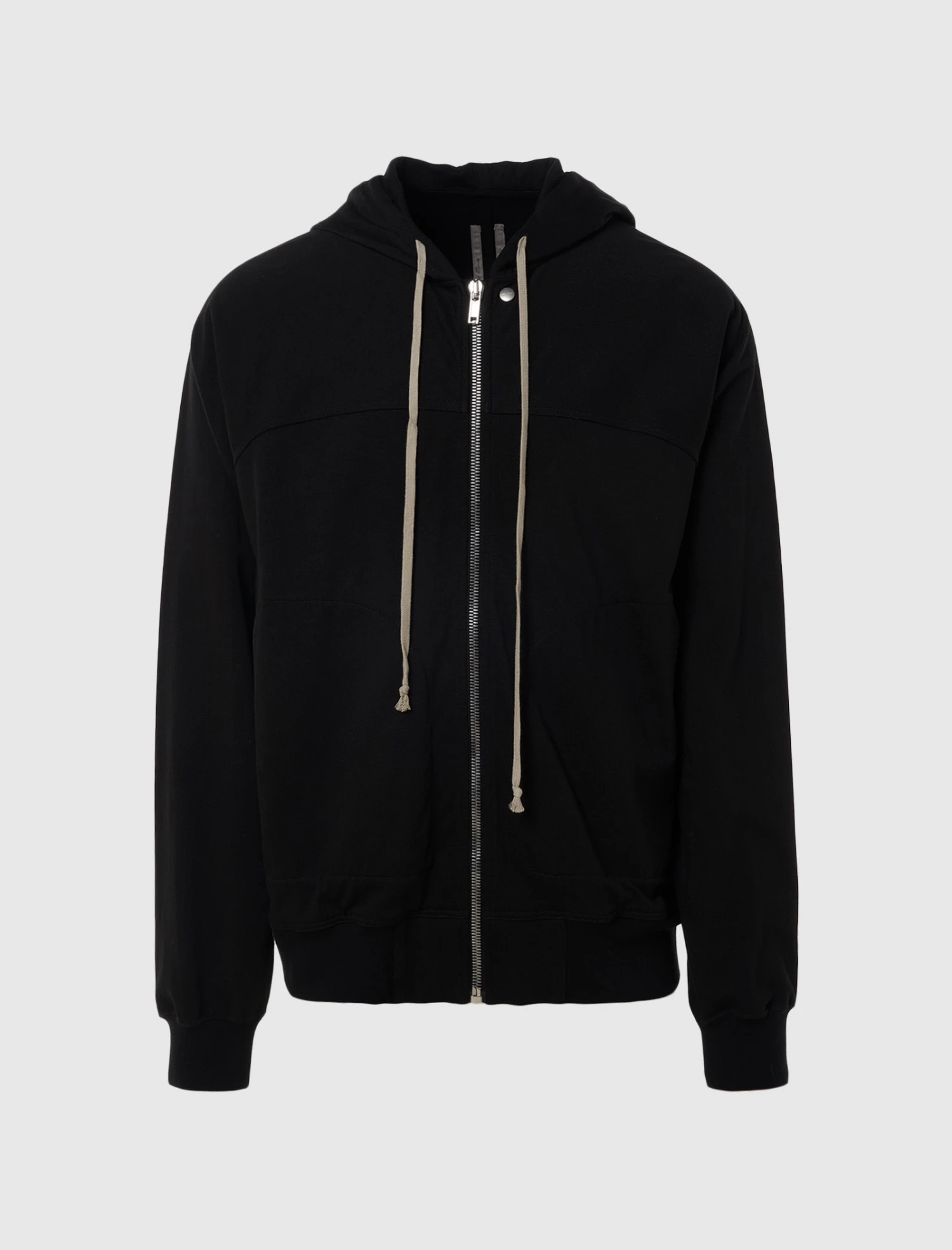 Relaxed-fit windbreaker jacket. Adjustable drawstring hood. Two pockets at sides. Ribbed cuffs and hem. Zip closure at front.