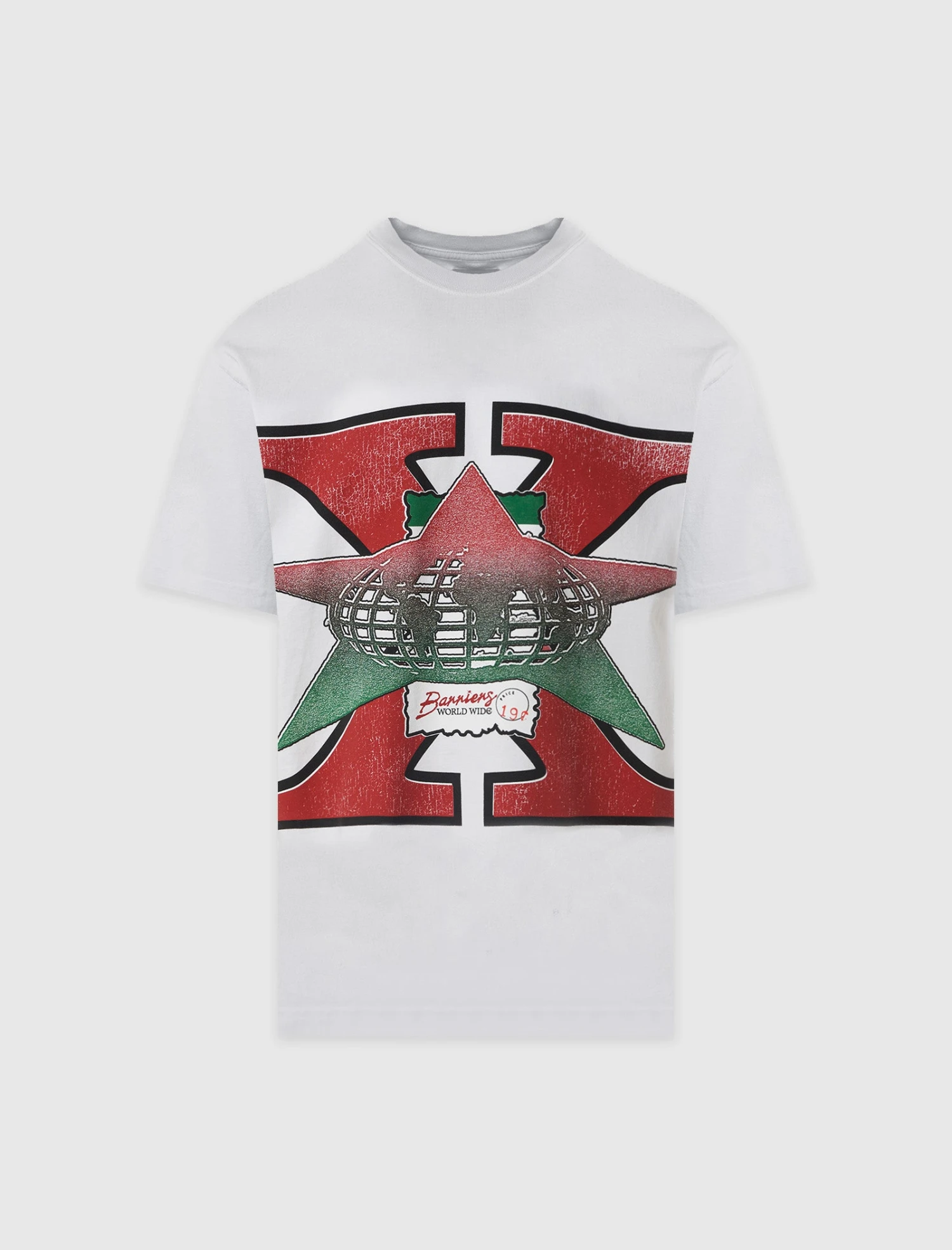 Feel the energy of the world with our Barriers classic-fit short sleeve cotton t-shirt. Featuring a crewneck and graphic logo texts, this tee showcases globe prints and front designs that will inspire you to break through any barriers.